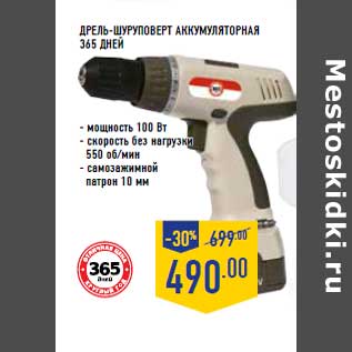 Магазин: Лента, Скидка: Дрель-шуруповерт аккумуляторная 365 ДНЕЙ.